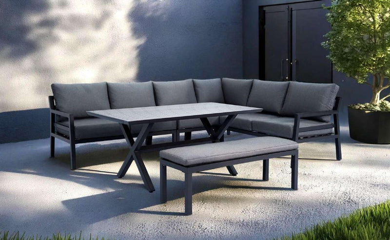 MIRAGE 5pc Aluminium Outdoor L Lounge Set - dining table & bench - GUNMETAL